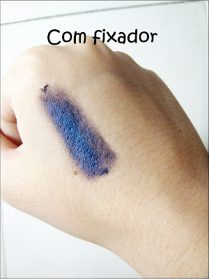 A diferença é absurda, não é??? É claro que, para quem curte um efeito mais escuro (porém com brilho) recomendo o não uso do produto. Mas olha só o tom da sombra como muda, após a aplicação do fixador! Esta sombra que usei foi uma que coincidentemente comprei no mesmo dia, pois estava louca por uma neste tom. Por sinal, esta foi a sombra que também usei ontem em meu make (não consegui tirar uma foto em zoom desta parte da produção, falha minha)! Mas já deu pra ter uma noção, né?
